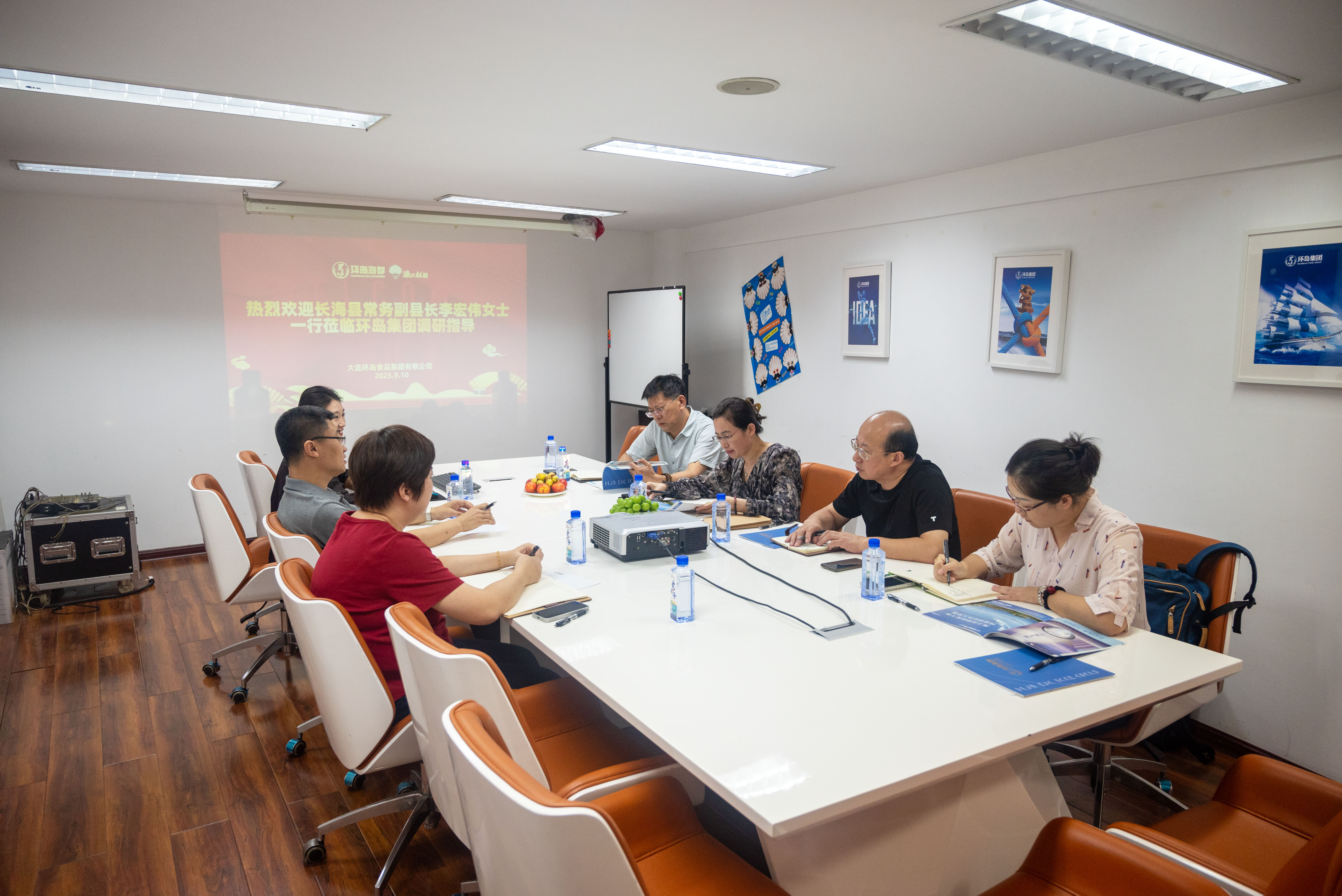 9月10日,長海縣常務副縣長李宏偉 攜縣發改局、商務局、統計局等部門領導 蒞臨環島集團調研指導 調研組詳細了解企業在海參、海鮮零食、預制菜等方面的發展情況。座談會上,王振東董事長匯報了企業發展現狀與規劃。 李宏偉副縣長對環島集團在推動地方海洋產業發展中的作用表示肯定,并表示政府將持續營造良好發展環境,助力企業做優做強。 環島集團將不負厚望,致力于打